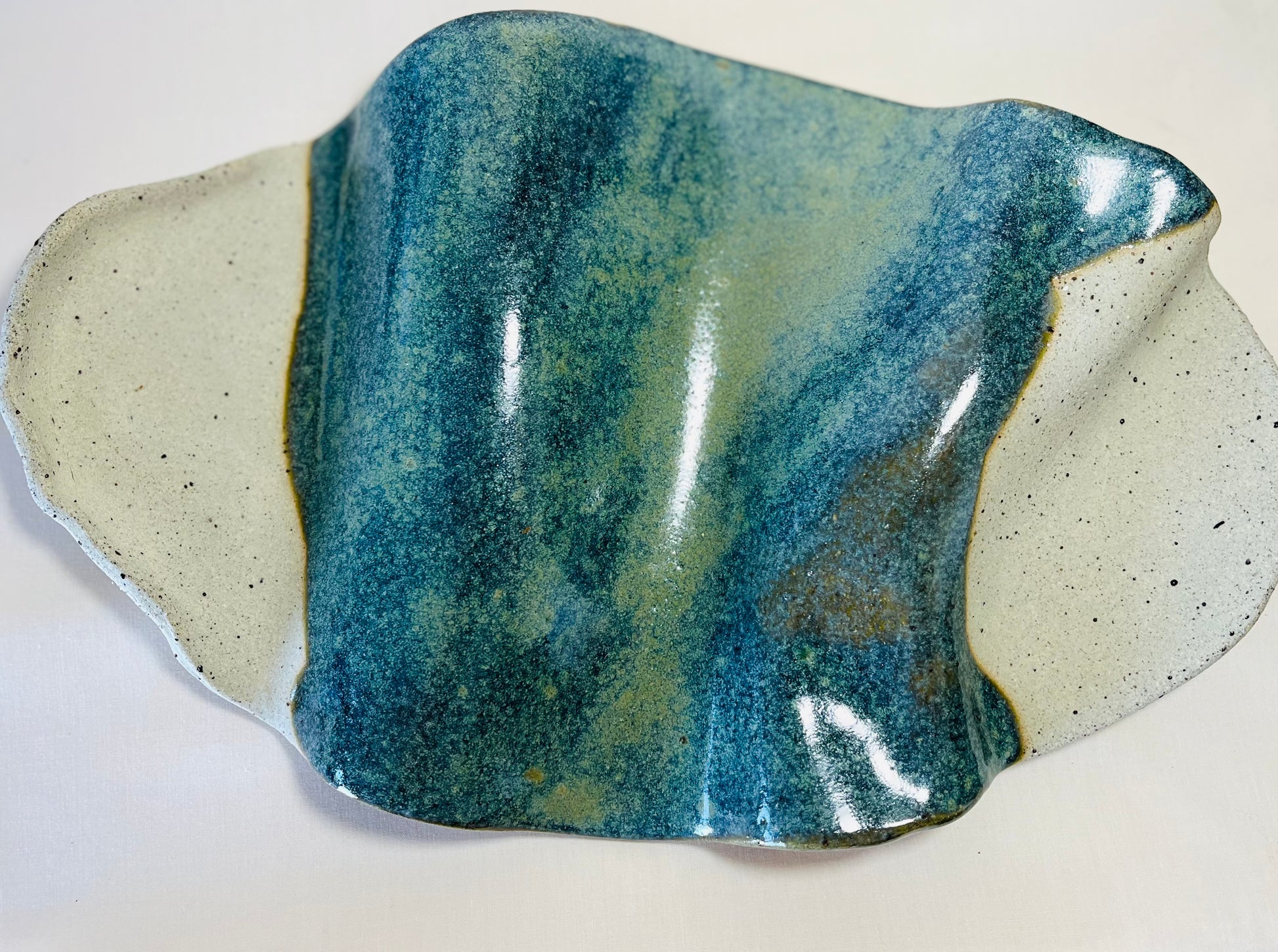 Inspired by the ebb and flow of the ocean, the Tide Curve Platter features soft, natural curves and a blend of deep teals, sea greens, and earthy tones. Its smaller size makes it perfect for a quiet lunch for one, a light grazing plate, or something simple to share over a glass of wine. Both functional and sculptural, it brings a sense of calm, coastal beauty to the table—or simply serves as a wave-like form to admire.