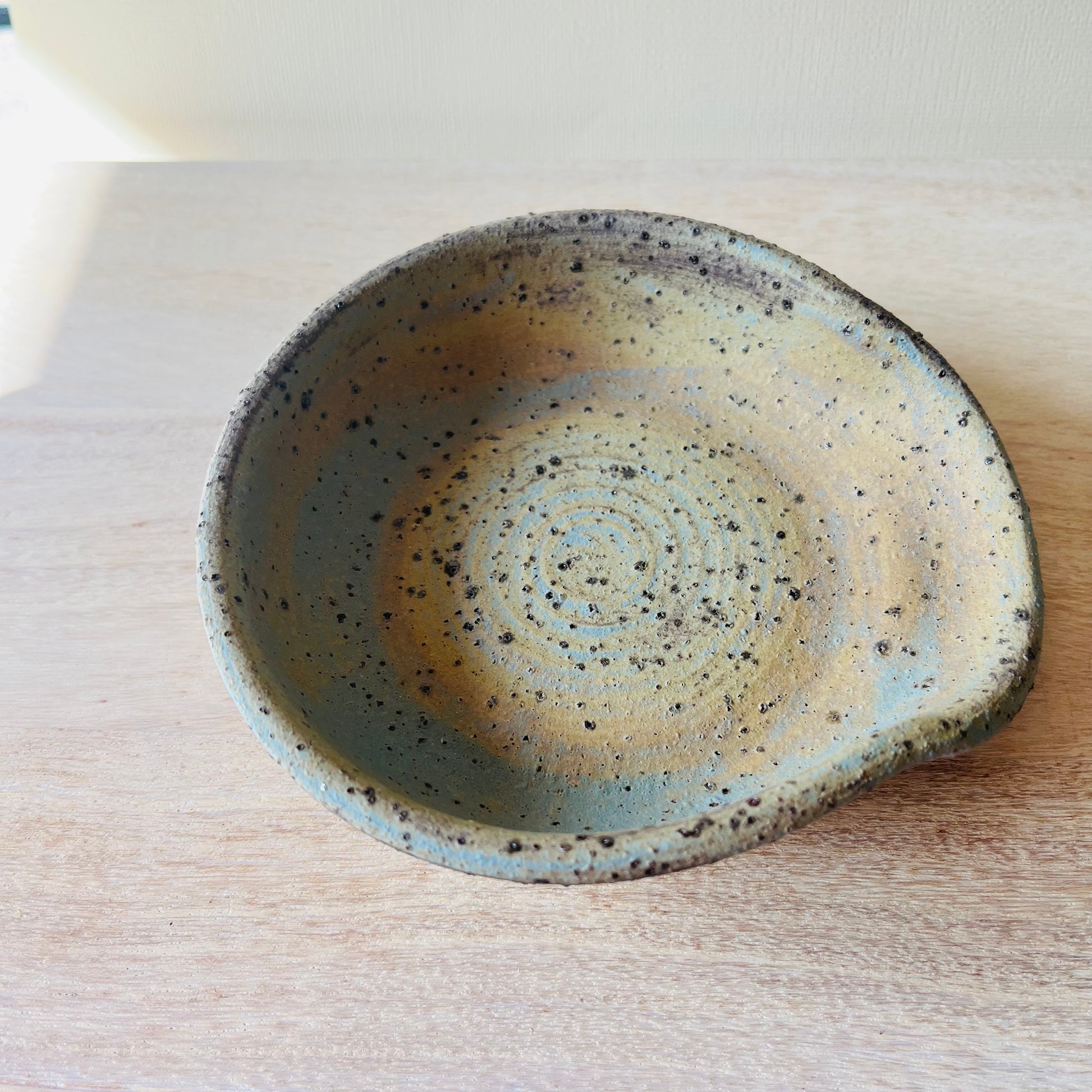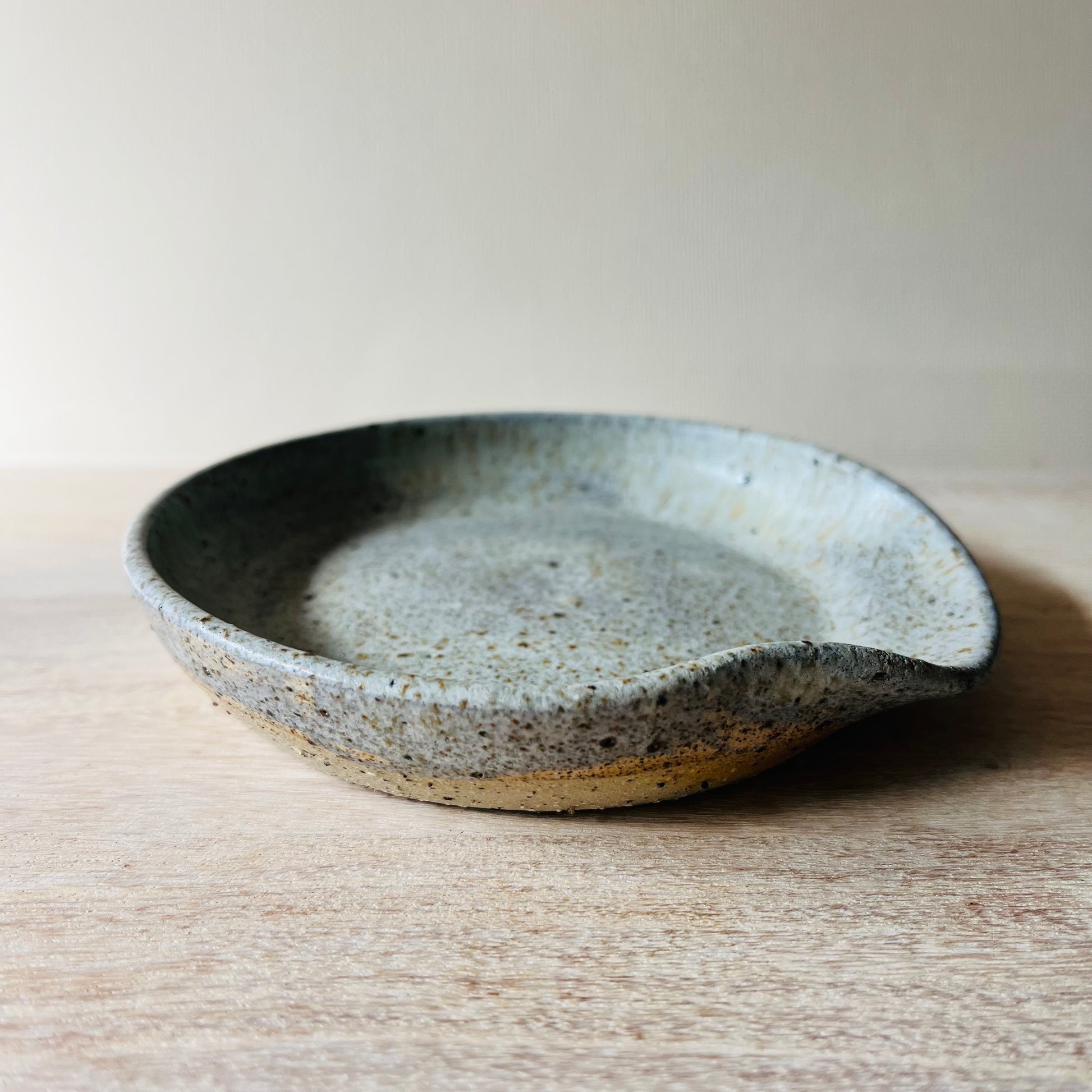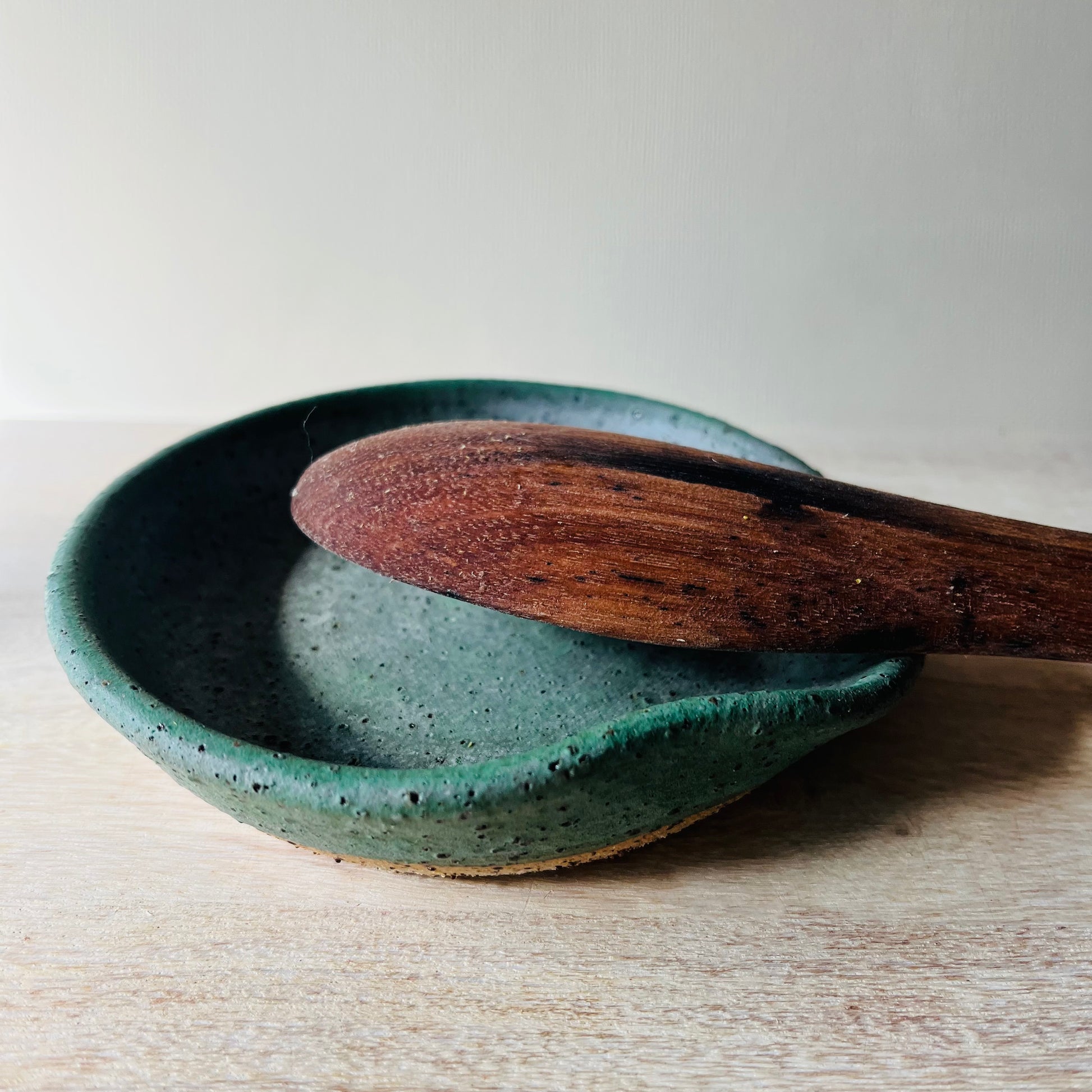 A round, lipped spoon rest made to sit beside the stove and keep benches clean while you cook. Each piece is wheel thrown in stoneware and finished in a range of glazes that highlight the rim and curve. Steady, practical and easy to rinse, it’s sized for everyday wooden spoons and cooking utensils.